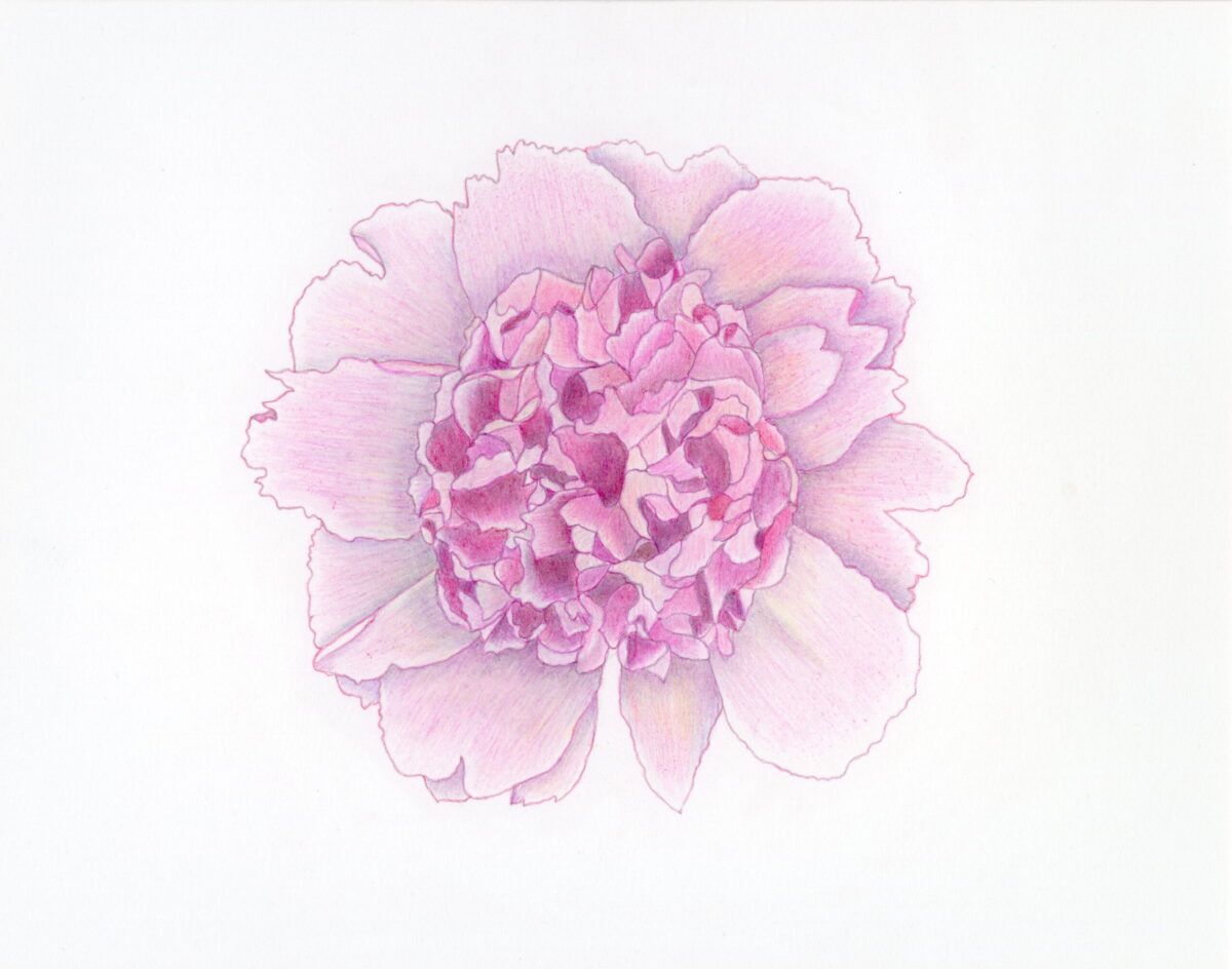 Fine Art Giclée of a colored pencil drawing of a Peony by Margo Casados. Print is on 8.5 x 11 fine art Giclée paper. Shipping and VAT calculated at checkout.